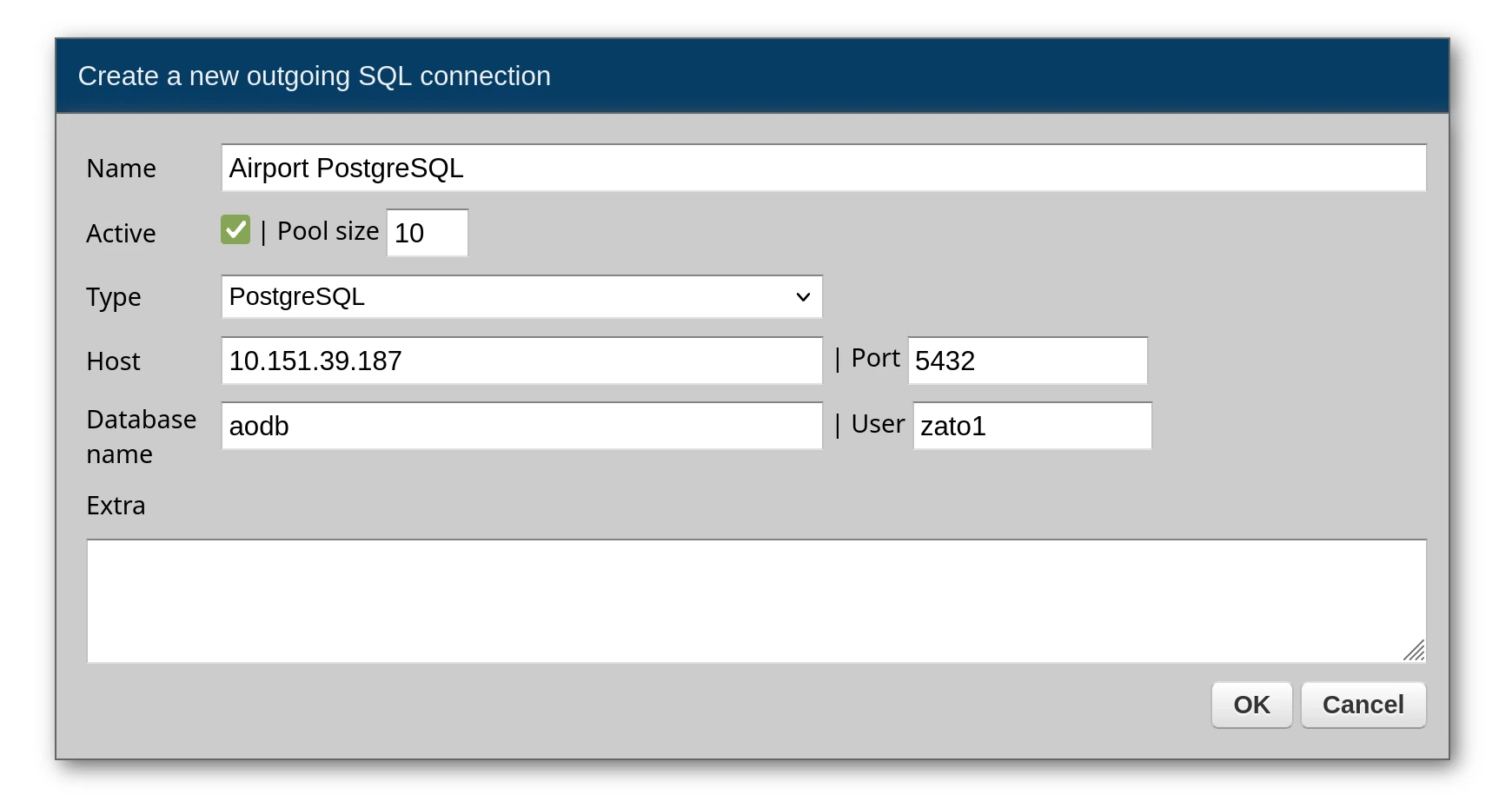 Open the Dashboard and go to Connections → Outgoing → SQL. Create a new connection, choose PostgreSQL, and fill in your database details.