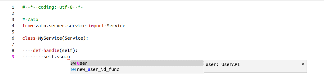 Follow the instructions below to add Zato code completion, also known as IntelliSense, to your IDE.