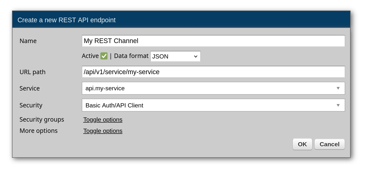 Security → GroupsAny client with credentials from a security definition in the assigned group can access the channel. This lets you: