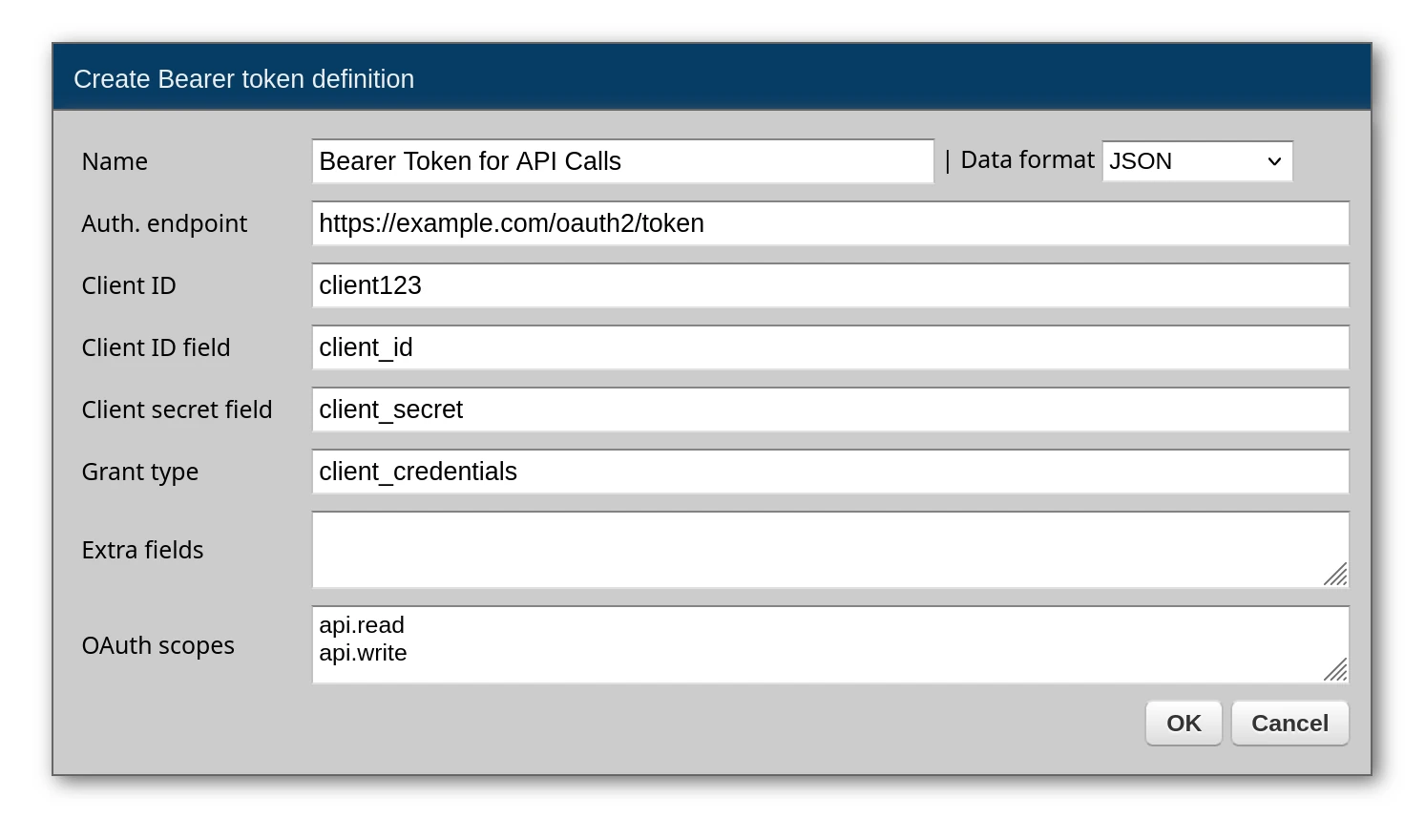 | Extra fields | Additional key=value pairs to include in token requests |
