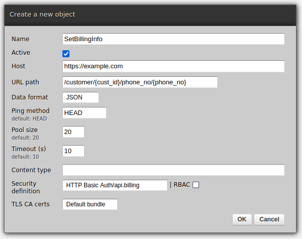 /customer/{cust_id}/phone_no/{phone_no}?priority=normal{"billing":"395.7", "currency":"EUR"}X-App-Name: Zato and X-Environment: ProductionAn outgoing connection and a service using it would read as follows:
