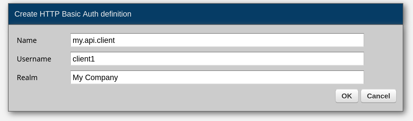To create credentials, go to Security → HTTP Basic Auth in Zato Dashboard and fill out the form as in the example below: