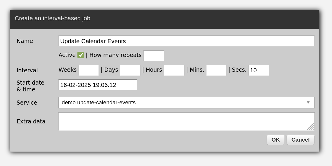 In the dashboard, go to Scheduler, then click Create a new job → interval-based and fill out the form as below: